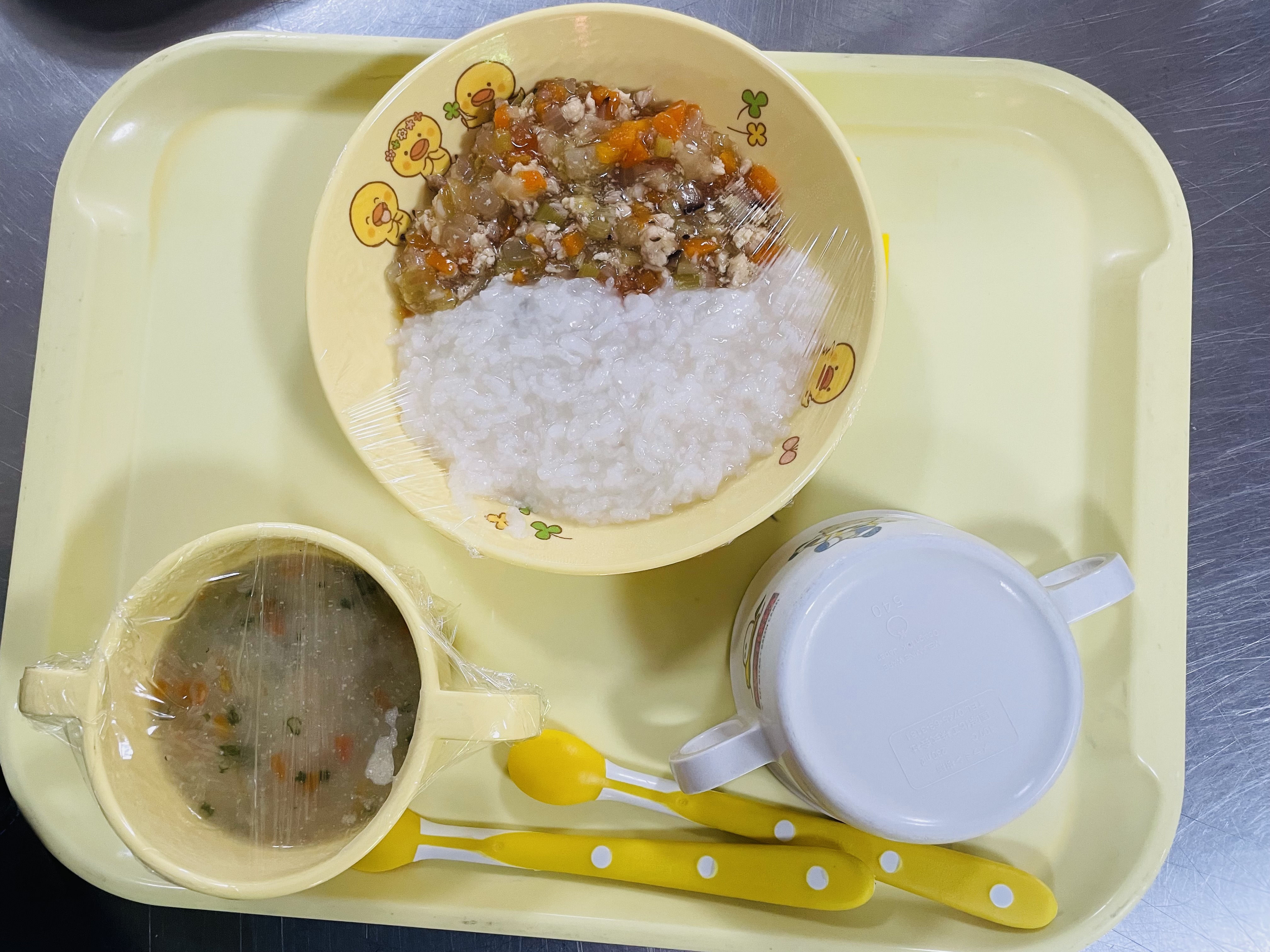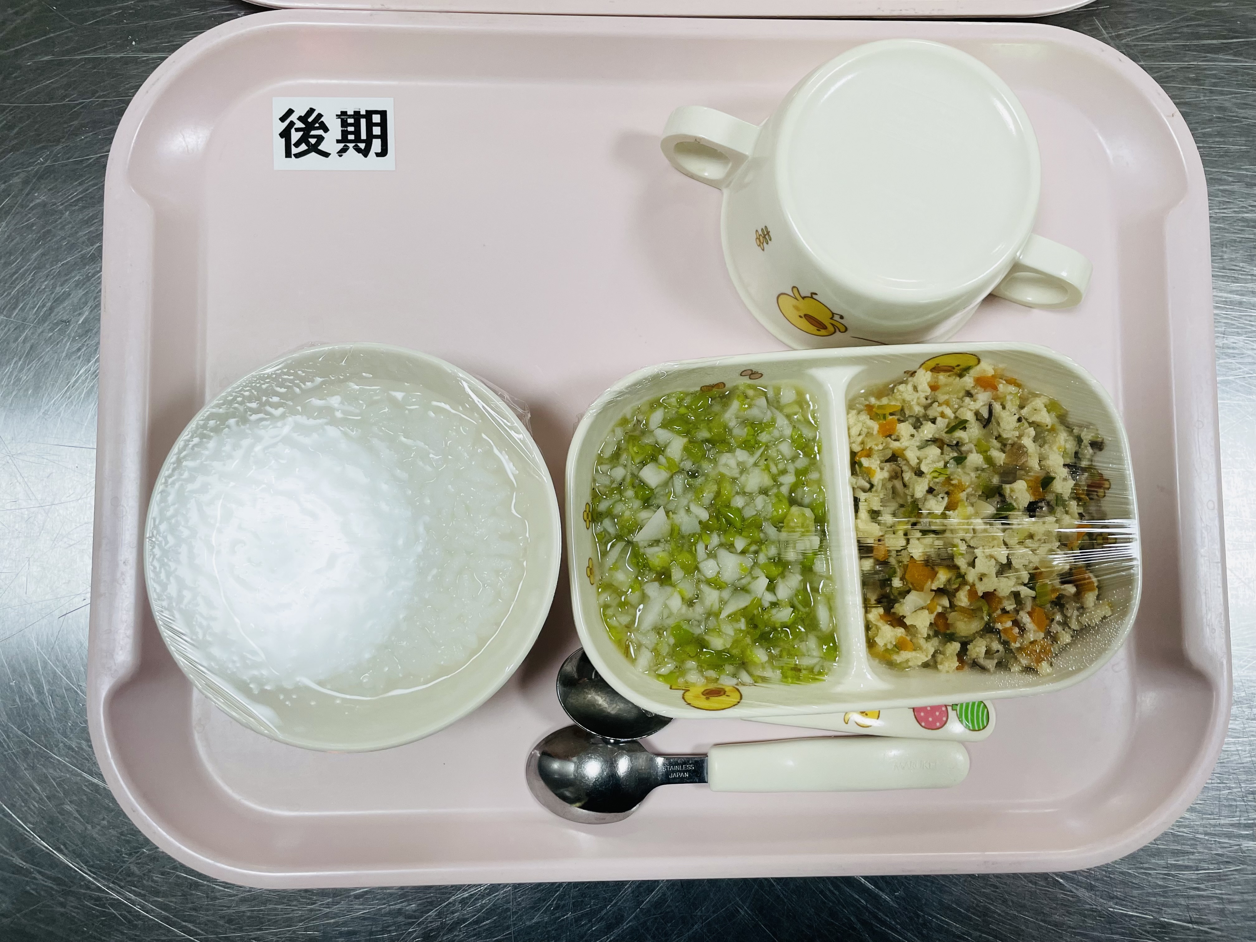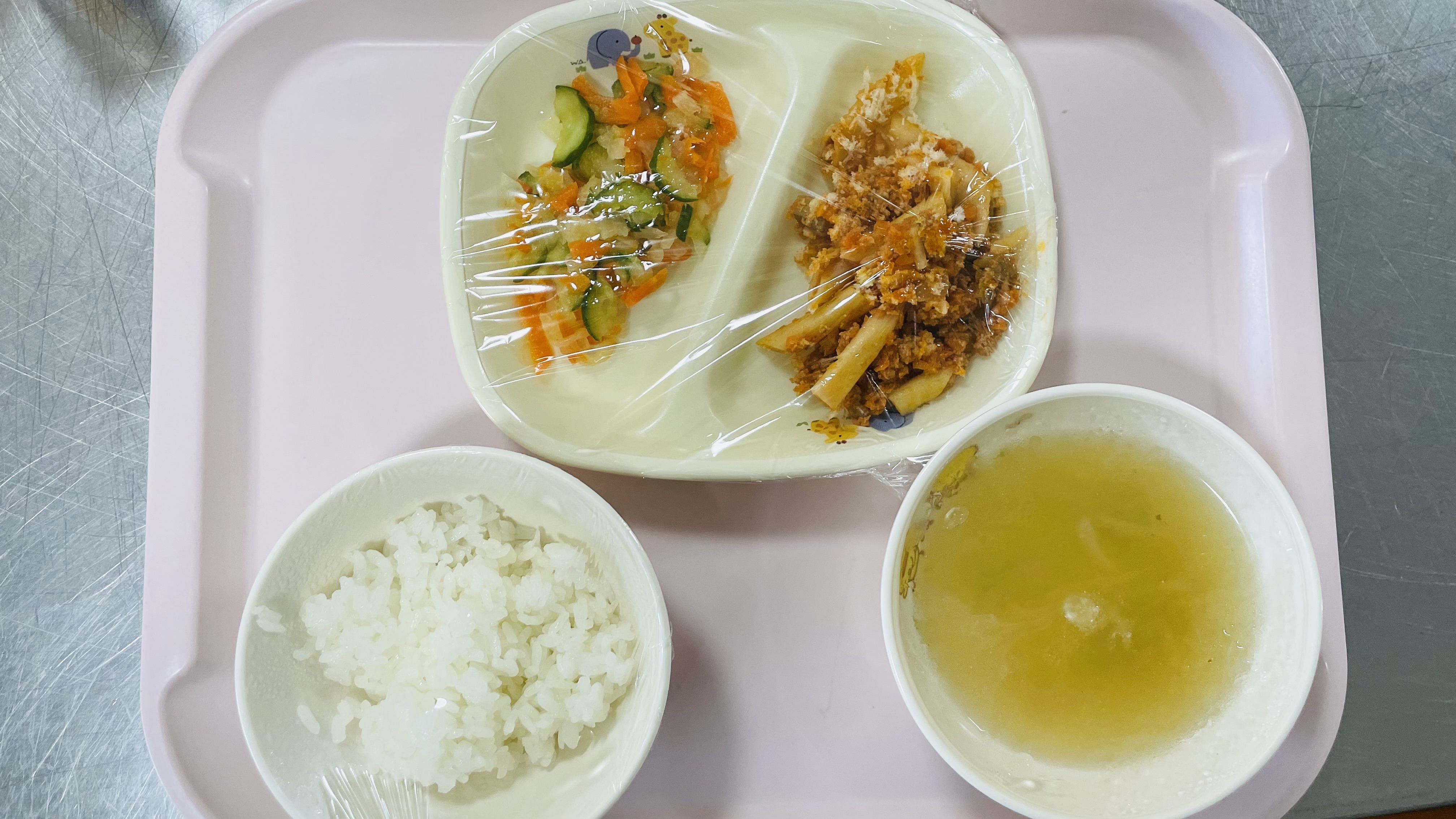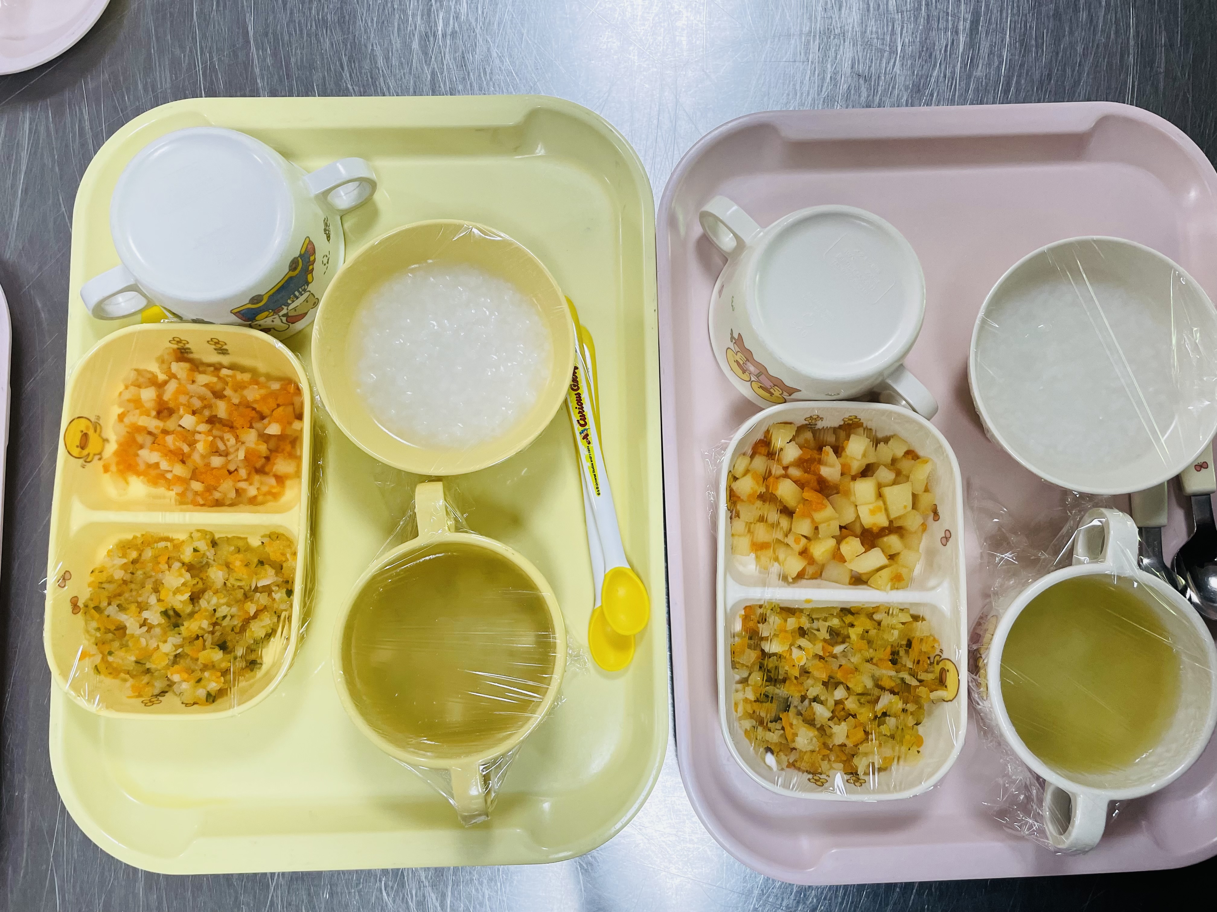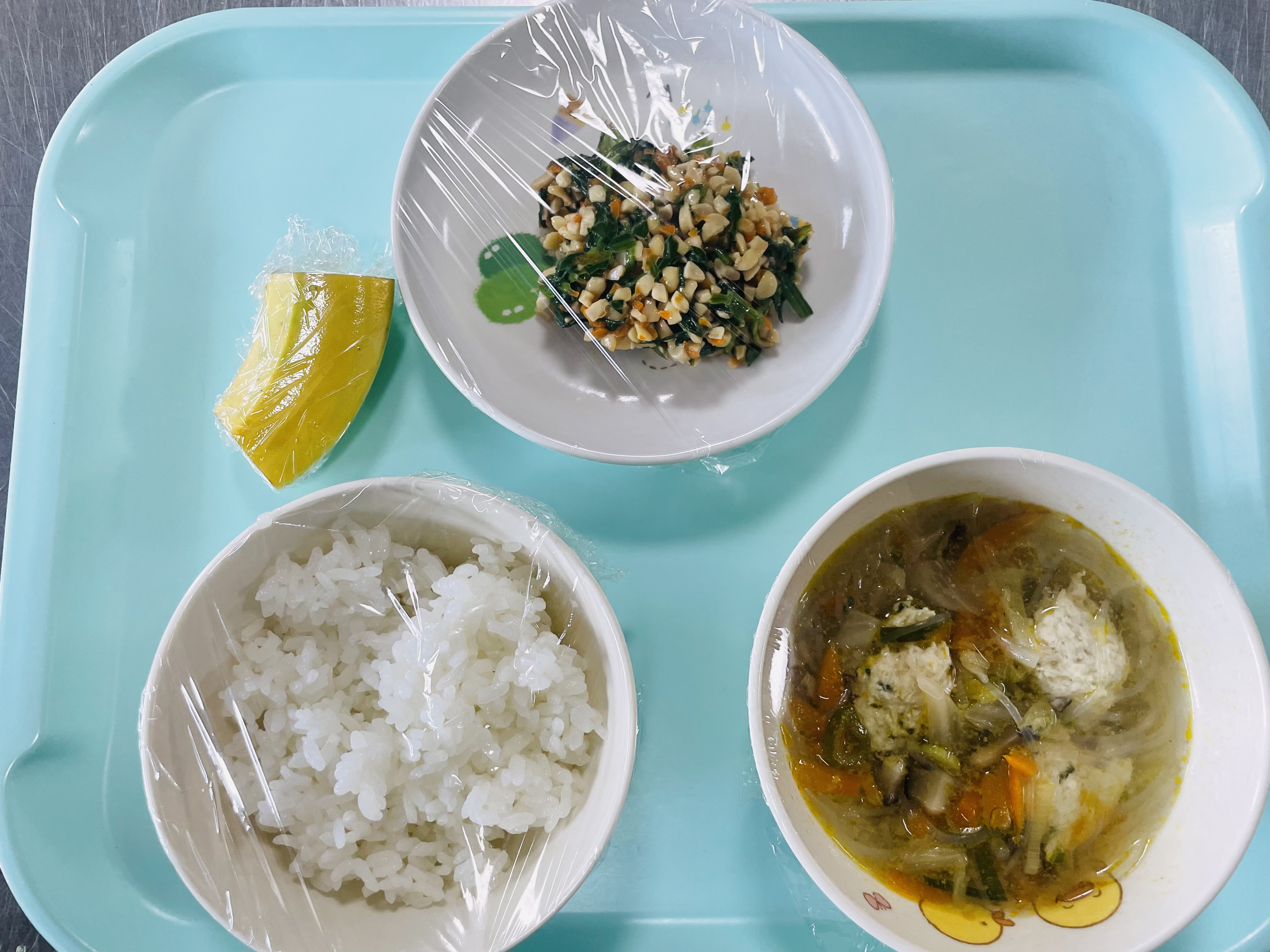 芳野保育園では、手作りの給食・乳幼児向け離乳食、おやつをお出ししています。毎日がんばって給食の先生が作っておられます。