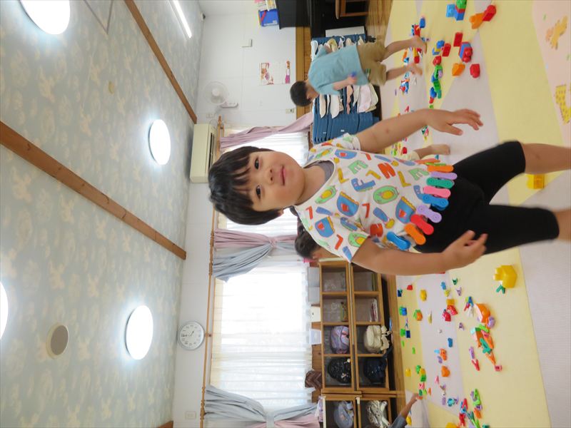 お部屋で自由遊びを楽しんでいます。進級して新しい玩具が増え嬉しそうなさくら組さんです!