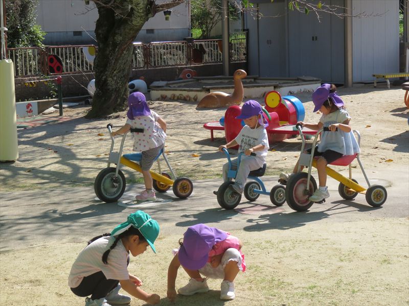 お外遊びでは三輪車が人気で貸し借りを行いながら仲良く遊んでくれています!!
