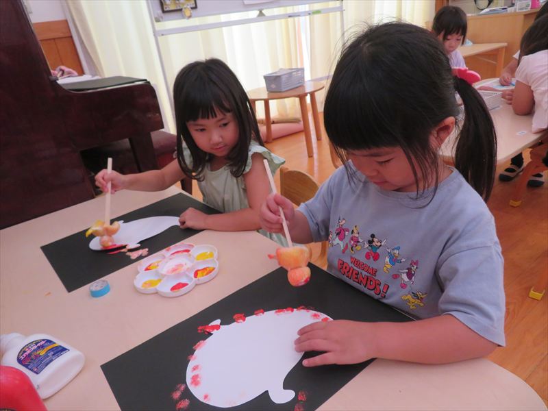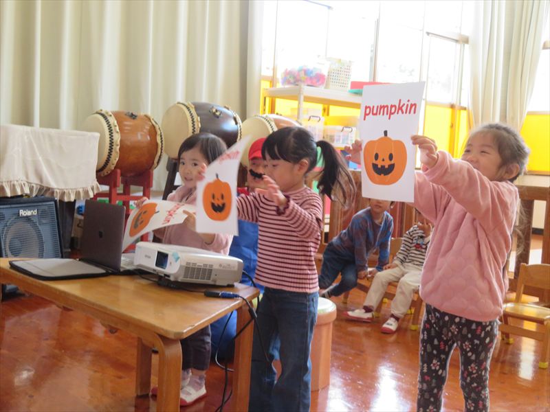 年長さんと年中さんの英語遊びの様子です。