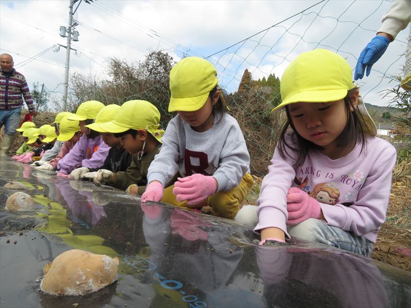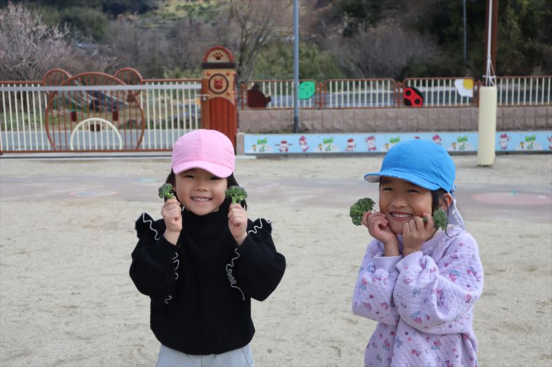 昨年植えていたほうれんそう、二十日大根の収穫へ行きました。沢山とれて嬉しそうな年長さん。とった野菜は給食で美味しくいただきました😆