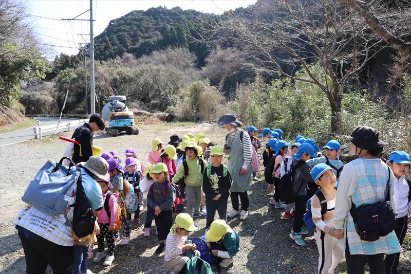 園周辺の山道を以上児さんと一緒にお散歩へ行ってきました!今まで以上に長い距離だったのでクタクタのきく組さんでした😆