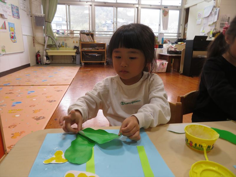5月の製作はタケノコを作りました!折紙をちぎってのりで貼る事に苦戦されていました💦