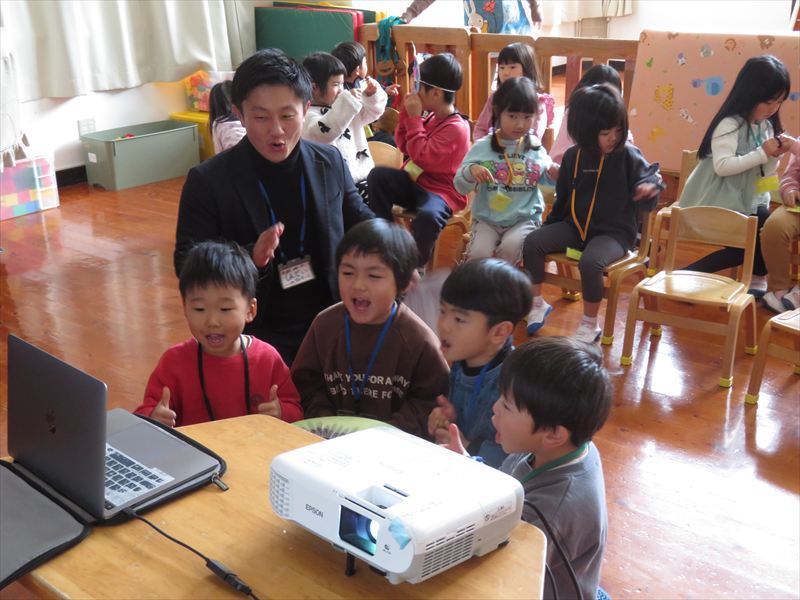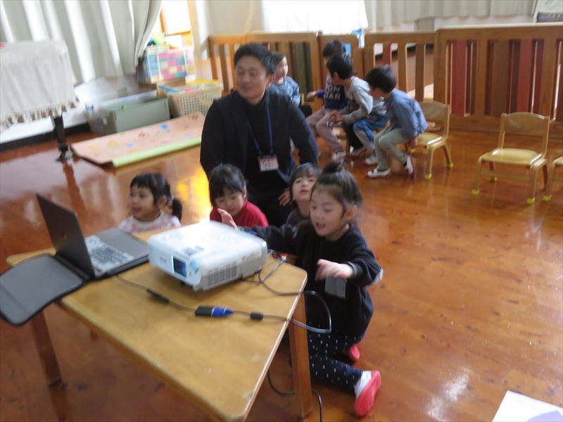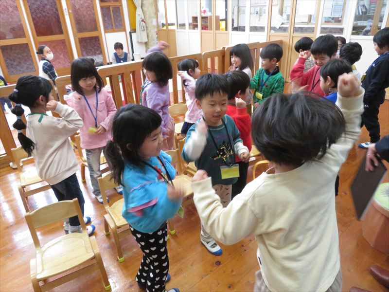 年長さんと年中さんの英語遊びの様子です。