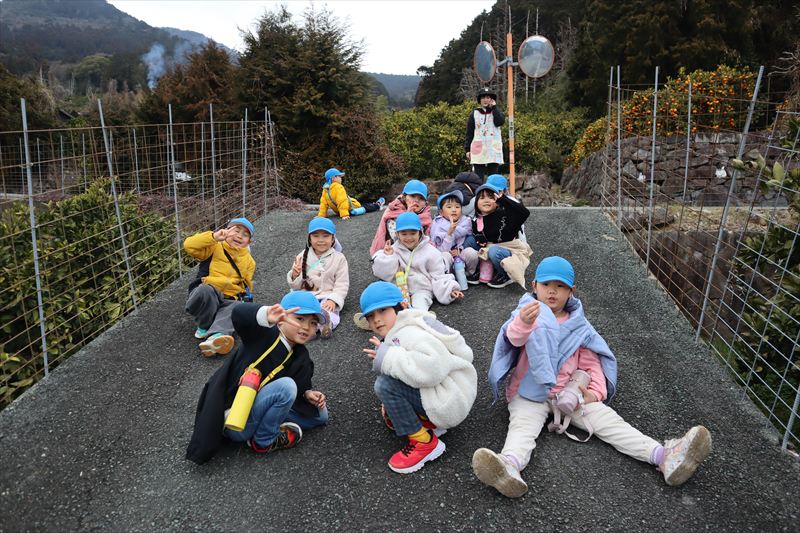 園周辺の山道を以上児さんと一緒にお散歩へ行ってきました!今まで以上に長い距離だったのでクタクタのきく組さんでした😆